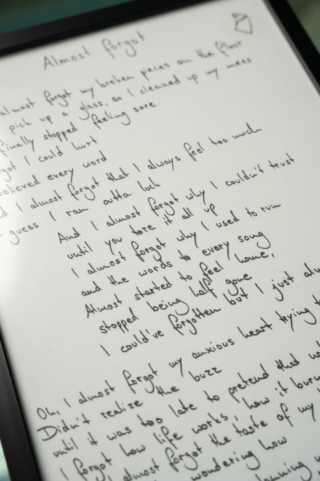 Handgeschriebene Lyrics in schwarzem Bilderrahmen (21x30 cm). Die Lyrics werden auf Bestellung angefertigt, wähle dazu einfach in den Produktvarianten deinen Wunsch-Song aus.