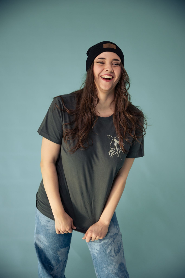 Das offizielle Merch T-Shirt von Alina Sebastian in dunkelgrau.